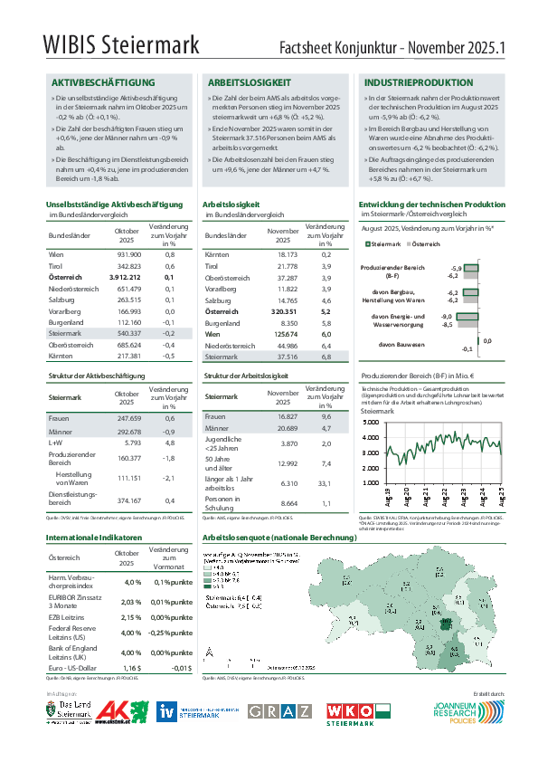 - 27. Oktober 2025: Beschäftigungs- und Arbeitsmarktprognose für die Steiermark 2025 und 2026 (Oktober 2025)