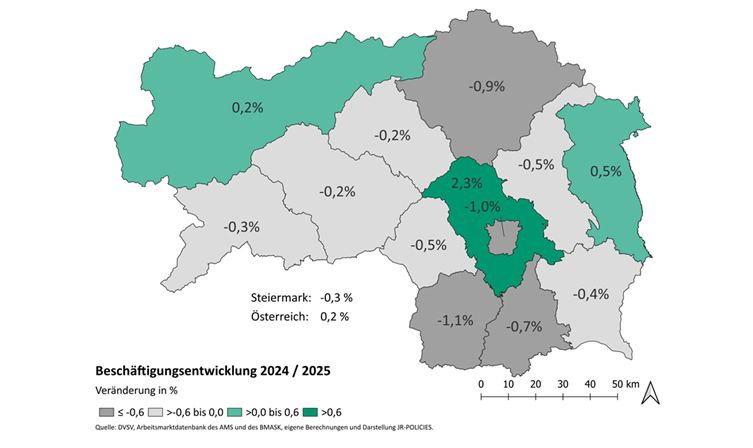 April 2026: Beschäftigungsentwicklung in den steirischen Bezirken 2025